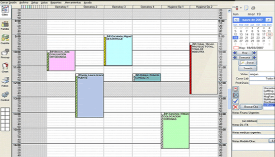 El Módulo de Citas permite llevar un completo registro de las citas de cada uno de los pacientes en la práctica diaria, el mismo está diseñado para que el usuario visualice las citas del día de uno o varios operatorios al mismo tiempo, con diferenciación de colores por profesional además de programar cada cita con un tiempo determinado de atención según la complejidad de cada tratamiento, ésto permite ordenar adecuadamente los tiempos en consulta además de optimizar la atención de los pacientes ahorrando tiempo.