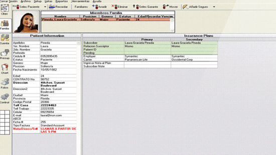 El Módulo Familia permite crear y actualizar los datos personales de los pacientes, además de agrupar a los pacientes por familias optimizando así los tiempos de respuesta evitando búsquedas innecesarias, además los datos pueden ser editados progresivamente para mantener actualizada su base de datos. Dispone también de un módulo doble de seguros permitiéndole trabajar con pacientes que tengan algún tipo de seguro privado.